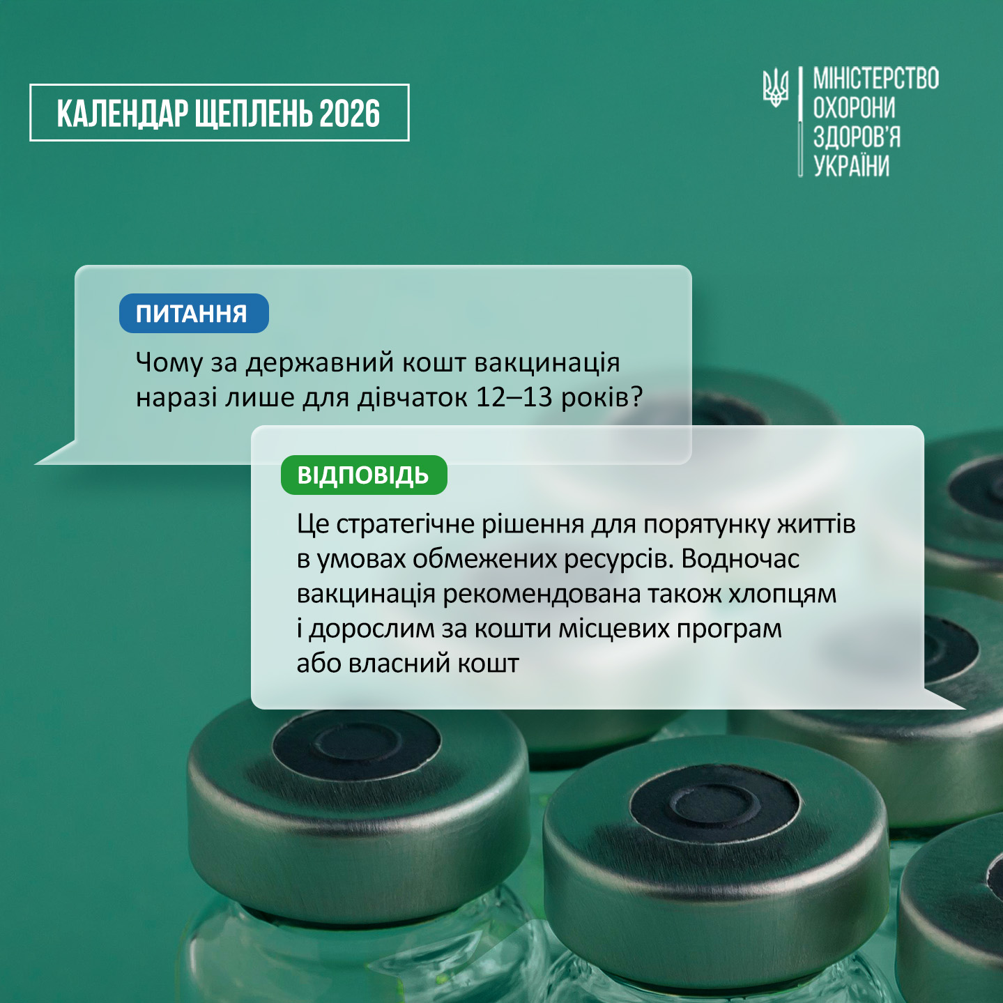 Чому за державний кошт вакцинація наразі лише для дівчаток 12–13 років?