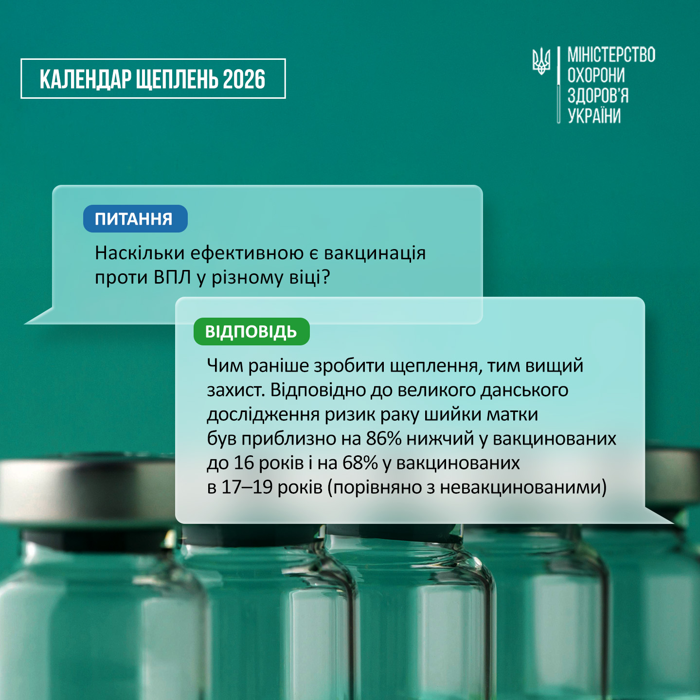 У оновленому Календарі профілактичних щеплень передбачена можливість безоплатної вакцинації для дівчат віком 12-13 років найсучаснішою 9-валентною вакциною.