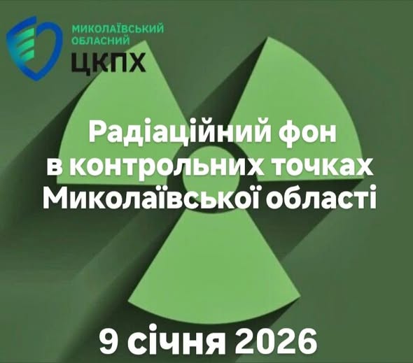 ахівці ДУ “Миколаївський обласний центр контролю та профілактики хвороб МОЗ України” щоденно проводять вимірювання радіаційного фону на території Миколаївської області станом на 9 січня 2026 року