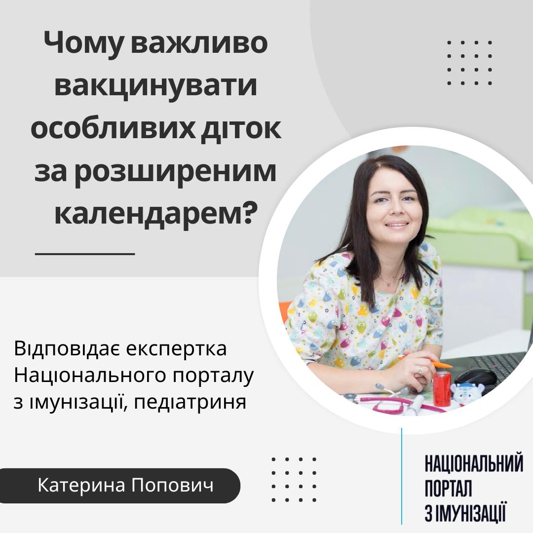 Діти з інвалідністю мають отримувати не лише забезепечені державою календарні щеплення, а й додаткові, адже є більш вразливими до інфекційних хвороб і мають високий ризик тяжкого перебігу цих хвороб.