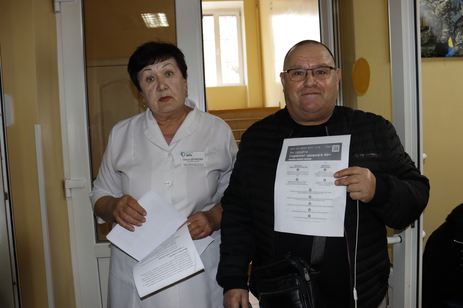 Ольга Друмова, фельдшер санітарного відділу епідеміологічного нагляду та профілактики неінфекційних захворювань, поспілкувалася з пацієнтами про програму «Скринінг здоров’я 40+». Просто і зрозуміло вона пояснила, що це за програма, кому вона потрібна і чому важливо не відкладати обстеження «на потім».