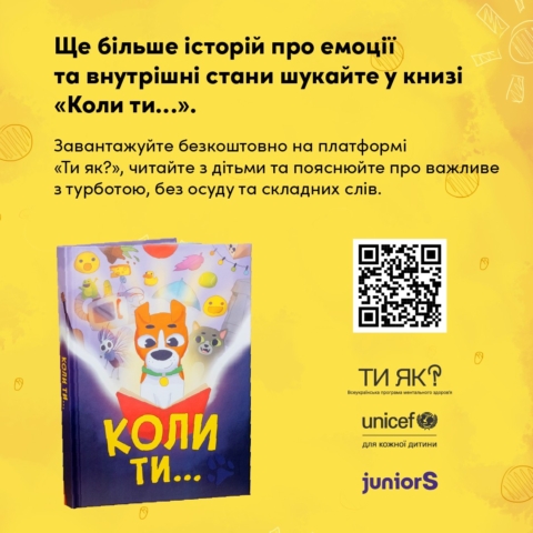 У книзі «Коли ти…» зібрані десять історій про емоції та внутрішні стани, які переживає кожна дитина. Усі почуття тут пояснені з турботою, без осуду та складних слів, а цікаві та веселі персонажі ще й пропонують виконати корисні вправи разом.