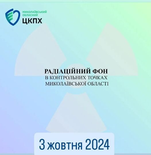 Станом на 3 жовтня 2024 в контрольних точках областi радiацiйний фон залишається на рiвнi багаторiчних природних показників, є безпечним для населення і складає :