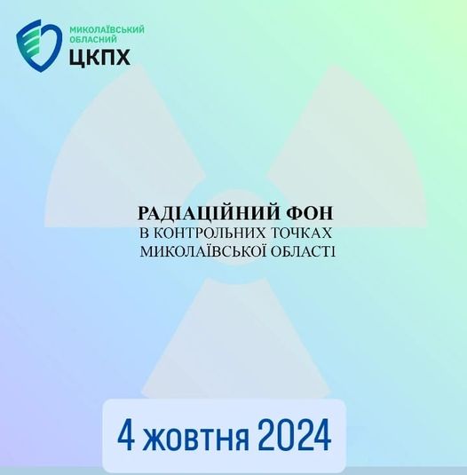 Станом на 4 жовтня 2024 в контрольних точках областi радiацiйний фон залишається на рiвнi багаторiчних природних показників, є безпечним для населення і складає :