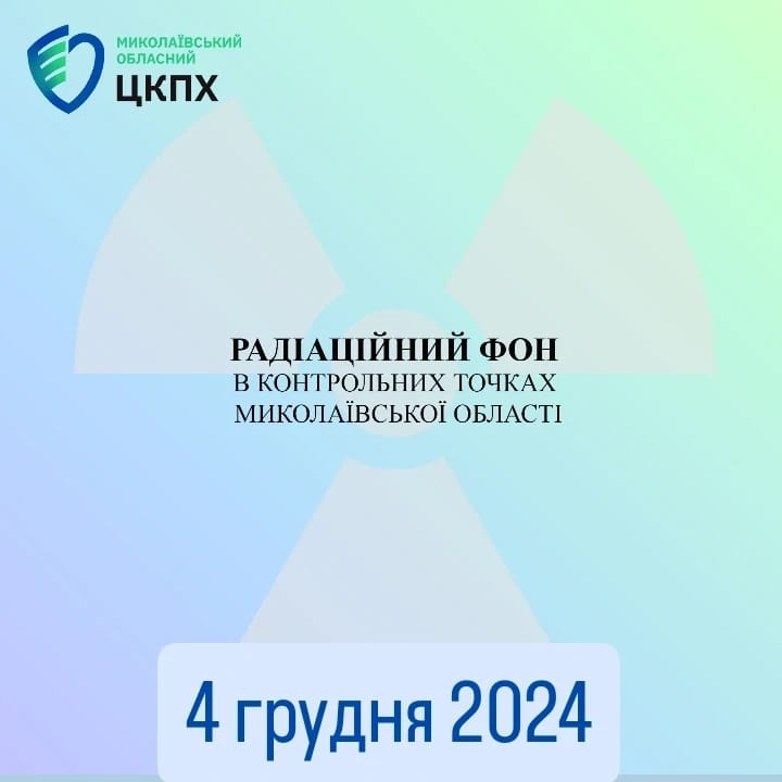Станом на 4 грудня 2024 в контрольних точках областi радiацiйний фон залишається на рiвнi багаторiчних природних показників, є безпечним для населення і складає :