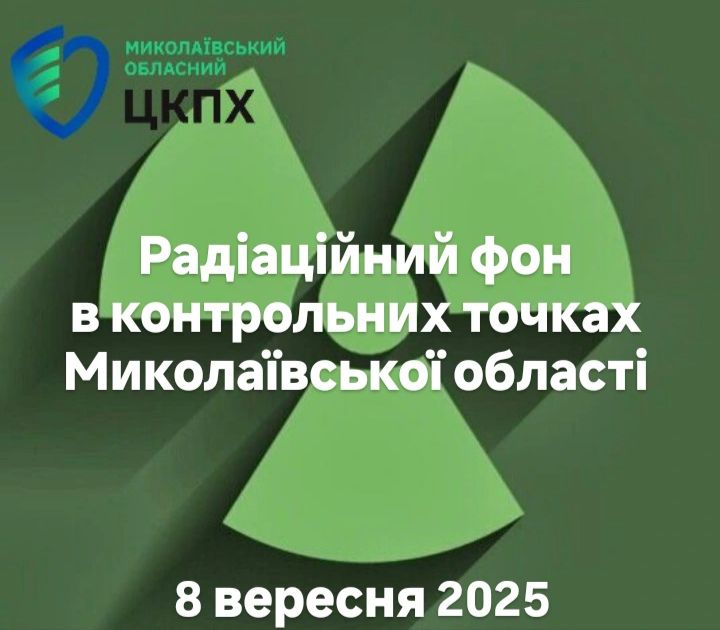 Фахівці ДУ “Миколаївський обласний центр контролю та профілактики хвороб МОЗ України” щоденно проводять вимірювання радіаційного фону на території Миколаївської області станом на 08 вересня 2025 року