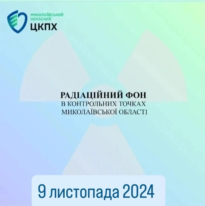 Станом на 9 листопада 2024 в контрольних точках областi радiацiйний фон залишається на рiвнi багаторiчних природних показників, є безпечним для населення і складає :
