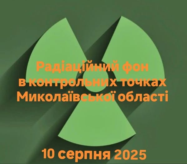 Станом на 10 серпня 2025 в контрольних точках областi радiацiйний фон залишається на рiвнi багаторiчних природних показників, є безпечним для населення і складає :
