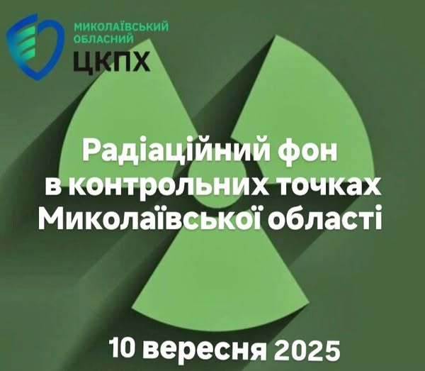 Фахівці ДУ “Миколаївський обласний центр контролю та профілактики хвороб МОЗ України” щоденно проводять вимірювання радіаційного фону на території Миколаївської області станом на 10 вересня 2025 року