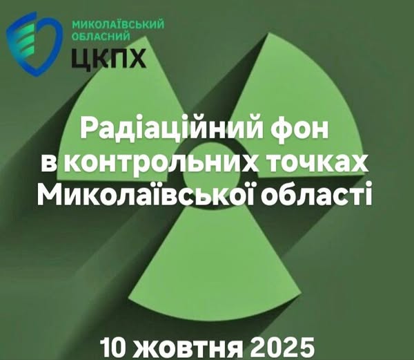 Фахівці ДУ “Миколаївський обласний центр контролю та профілактики хвороб МОЗ України” щоденно проводять вимірювання радіаційного фону на території Миколаївської області станом на 10 жовтня 2025 року