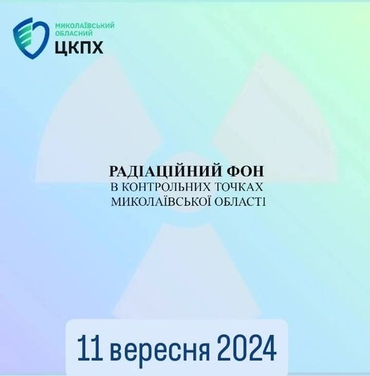 Станом на 11 вересня 2024 в контрольних точках областi радiацiйний фон залишається на рiвнi багаторiчних природних показників, є безпечним для населення і складає :
