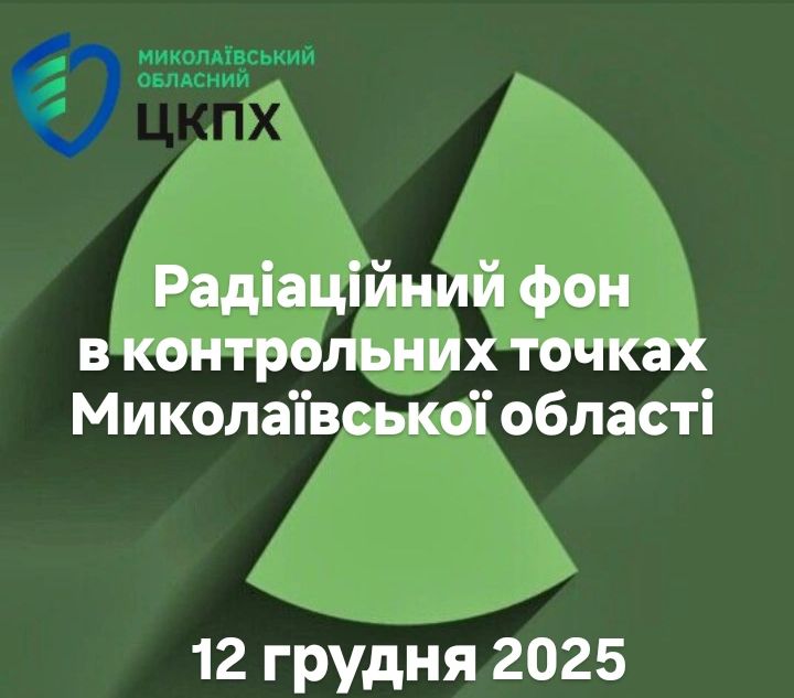 Фахівці ДУ “Миколаївський обласний центр контролю та профілактики хвороб МОЗ України” щоденно проводять вимірювання радіаційного фону на території Миколаївської області станом на 12 грудня 2025 року