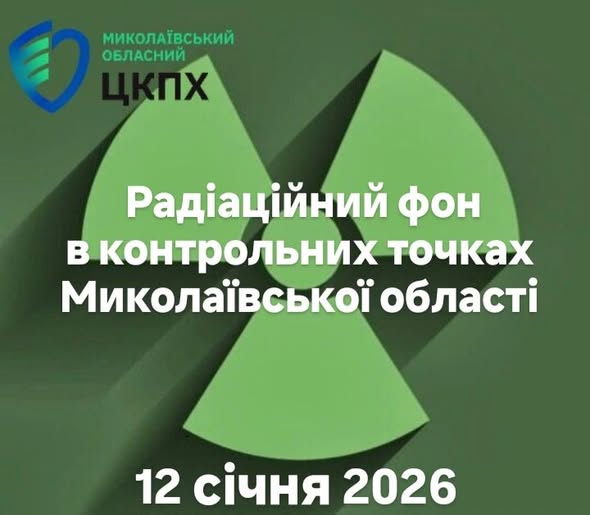 Фахівці ДУ “Миколаївський обласний центр контролю та профілактики хвороб МОЗ України” щоденно проводять вимірювання радіаційного фону на території Миколаївської області станом на 12 січня 2026 року