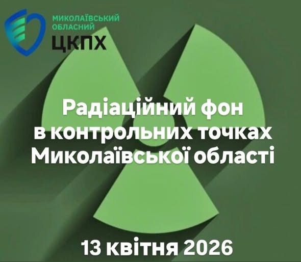 Фахівці ДУ “Миколаївський обласний центр контролю та профілактики хвороб МОЗ України” щоденно проводять вимірювання радіаційного фону на території Миколаївської області станом на 13 квітня 2026 року