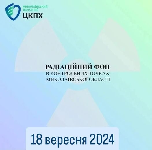 Станом на 18 вересня 2024 в контрольних точках областi радiацiйний фон залишається на рiвнi багаторiчних природних показників, є безпечним для населення і складає :