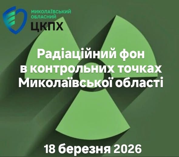 Фахівці ДУ “Миколаївський обласний центр контролю та профілактики хвороб МОЗ України” щоденно проводять вимірювання радіаційного фону на території Миколаївської області станом на 18 березня 2026 року