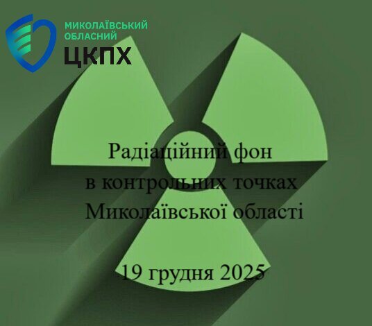 Фахівці ДУ “Миколаївський обласний центр контролю та профілактики хвороб МОЗ України” щоденно проводять вимірювання радіаційного фону на території Миколаївської області станом на 19 грудня 2025 року