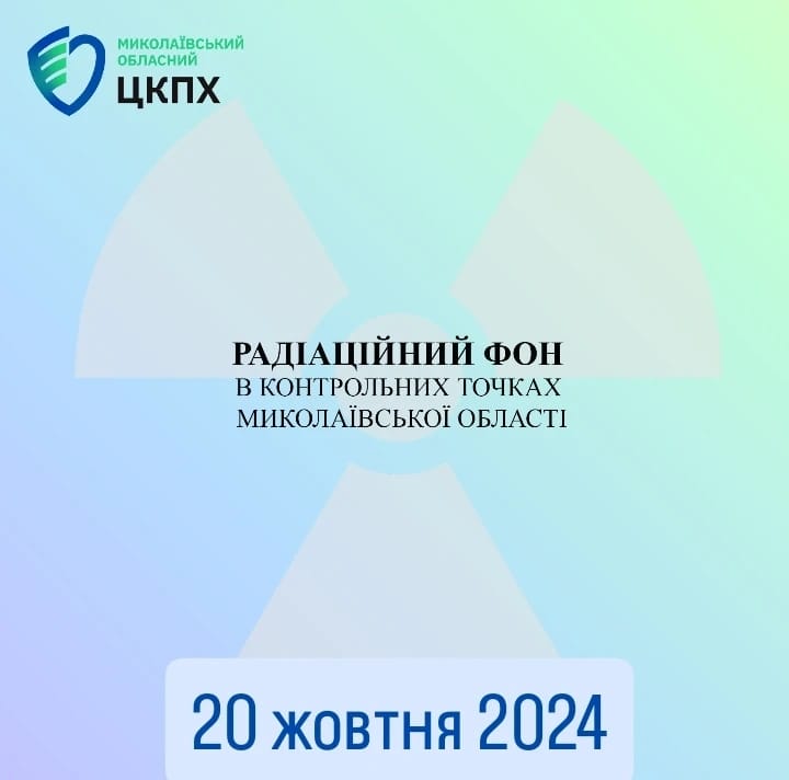 Станом на 20 жовтня 2024 в контрольних точках областi радiацiйний фон залишається на рiвнi багаторiчних природних показників, є безпечним для населення і складає :
