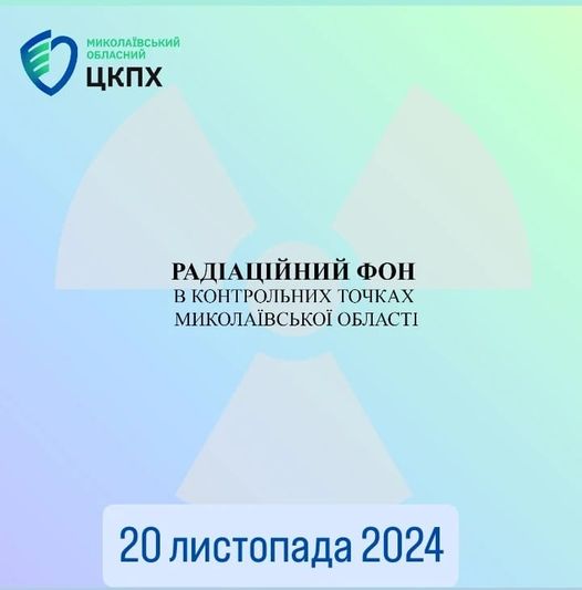 Станом на 20 листопада 2024 в контрольних точках областi радiацiйний фон залишається на рiвнi багаторiчних природних показників, є безпечним для населення і складає :