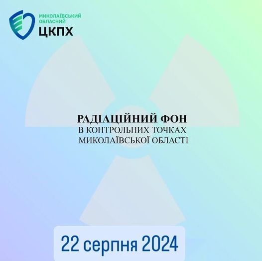 Станом на 22 серпня 2024 в контрольних точках областi радiацiйний фон залишається на рiвнi багаторiчних природних показників, є безпечним для населення і складає :