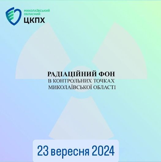 Станом на 23 вересня 2024 в контрольних точках областi радiацiйний фон залишається на рiвнi багаторiчних природних показників, є безпечним для населення і складає :