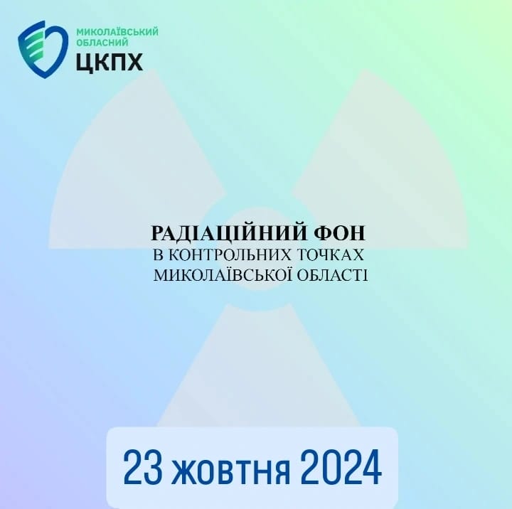 Станом на 23 жовтня 2024 в контрольних точках областi радiацiйний фон залишається на рiвнi багаторiчних природних показників, є безпечним для населення і складає :