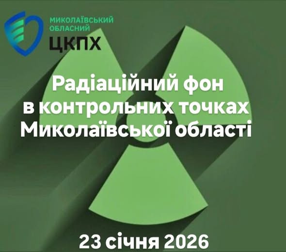 Фахівці ДУ “Миколаївський обласний центр контролю та профілактики хвороб МОЗ України” щоденно проводять вимірювання радіаційного фону на території Миколаївської області станом на 23 січня 2026 року