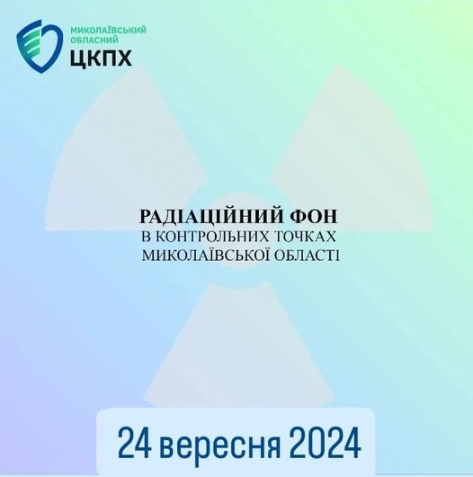 Станом на 24 вересня 2024 в контрольних точках областi радiацiйний фон залишається на рiвнi багаторiчних природних показників, є безпечним для населення і складає: