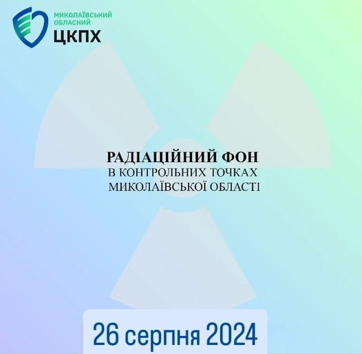 Станом на 26 серпня 2024 в контрольних точках областi радiацiйний фон залишається на рiвнi багаторiчних природних показників, є безпечним для населення і складає :