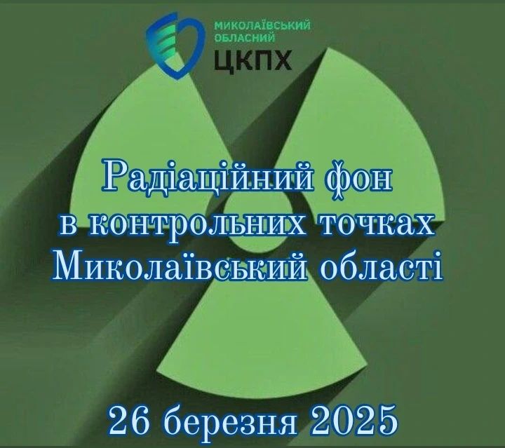 Станом на 26 березня 2025 в контрольних точках областi радiацiйний фон залишається на рiвнi багаторiчних природних показників, є безпечним для населення і складає :