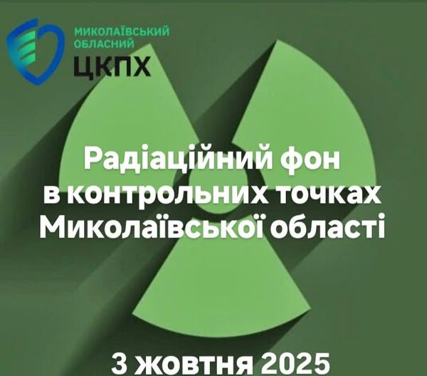 Фахівці ДУ “Миколаївський обласний центр контролю та профілактики хвороб МОЗ України” щоденно проводять вимірювання радіаційного фону на території Миколаївської області станом на 3 жовтня 2025 року
