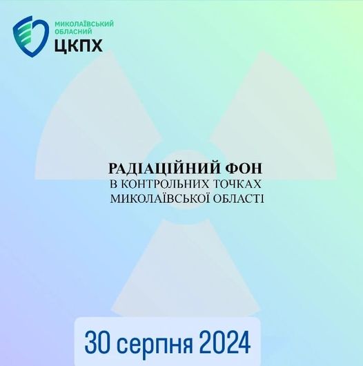 Станом на 30 серпня 2024 в контрольних точках областi радiацiйний фон залишається на рiвнi багаторiчних природних показників, є безпечним для населення і складає :