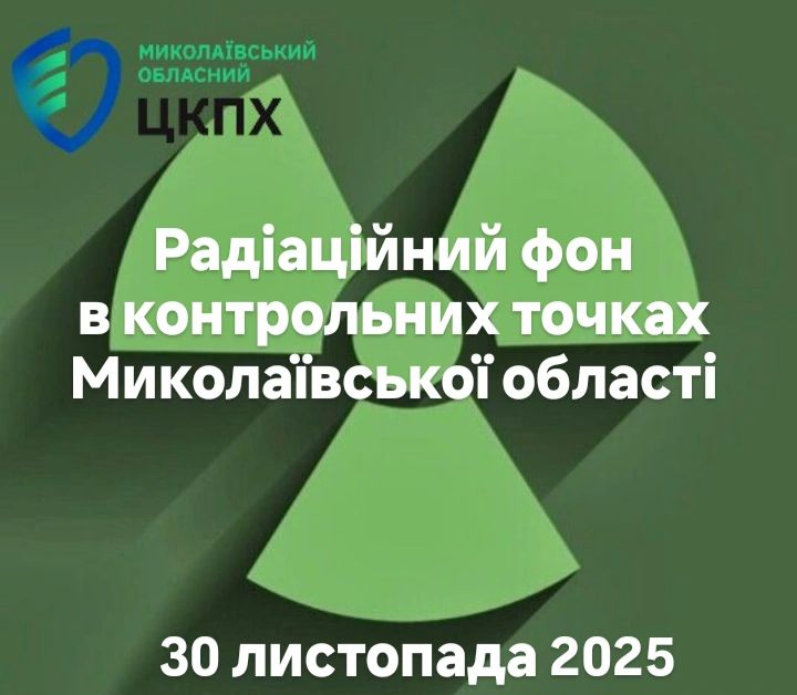 Фахівці ДУ “Миколаївський обласний центр контролю та профілактики хвороб МОЗ України” щоденно проводять вимірювання радіаційного фону на території Миколаївської області станом на 30 листопада 2025 року