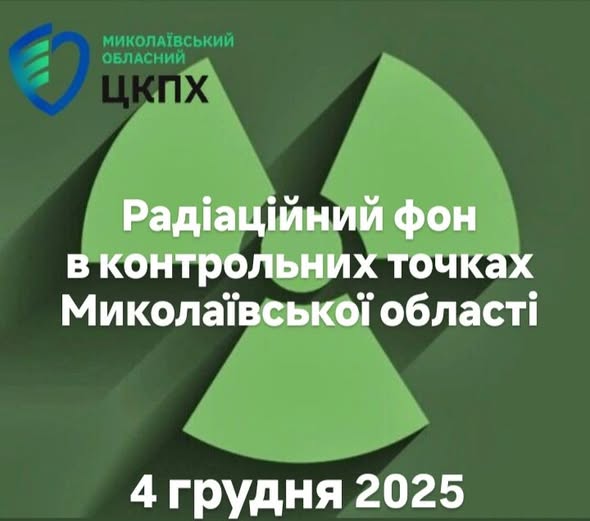 Фахівці ДУ “Миколаївський обласний центр контролю та профілактики хвороб МОЗ України” щоденно проводять вимірювання радіаційного фону на території Миколаївської області станом на 4 грудня 2025 року
