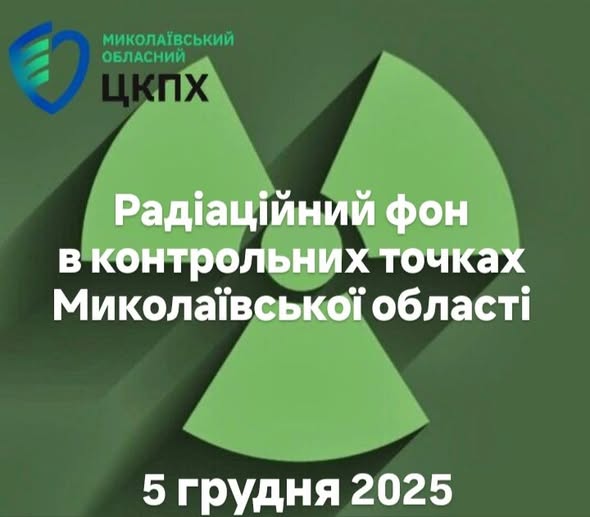 Фахівці ДУ “Миколаївський обласний центр контролю та профілактики хвороб МОЗ України” щоденно проводять вимірювання радіаційного фону на території Миколаївської області станом на 5 грудня 2025 року