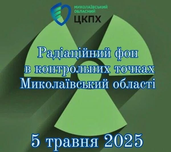 Станом на 5 травня 2025 в контрольних точках областi радiацiйний фон залишається на рiвнi багаторiчних природних показників, є безпечним для населення і складає :