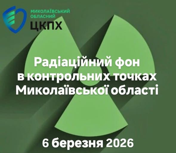 Фахівці ДУ “Миколаївський обласний центр контролю та профілактики хвороб МОЗ України” щоденно проводять вимірювання радіаційного фону на території Миколаївської області станом на 6 березня 2026 року