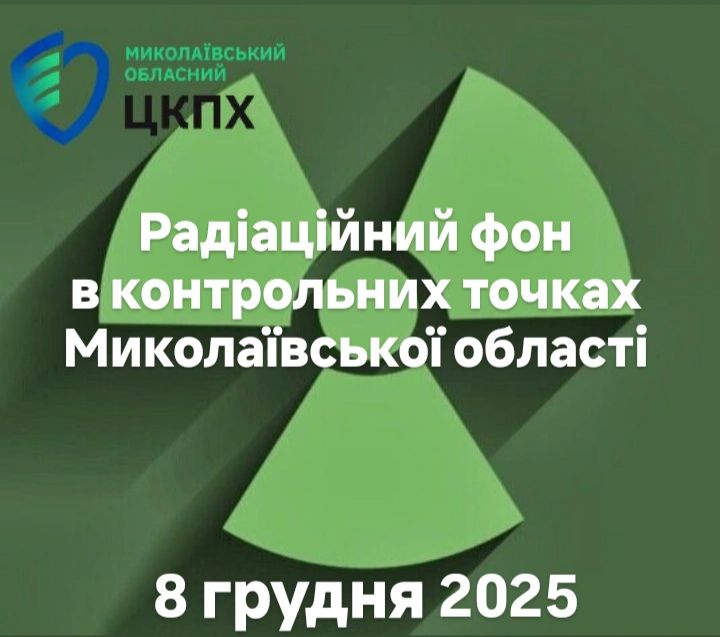 Фахівці ДУ “Миколаївський обласний центр контролю та профілактики хвороб МОЗ України” щоденно проводять вимірювання радіаційного фону на території Миколаївської області станом на 8 грудня 2025 року