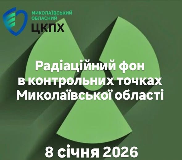 Фахівці ДУ “Миколаївський обласний центр контролю та профілактики хвороб МОЗ України” щоденно проводять вимірювання радіаційного фону на території Миколаївської області станом на 8 січня 2026 року