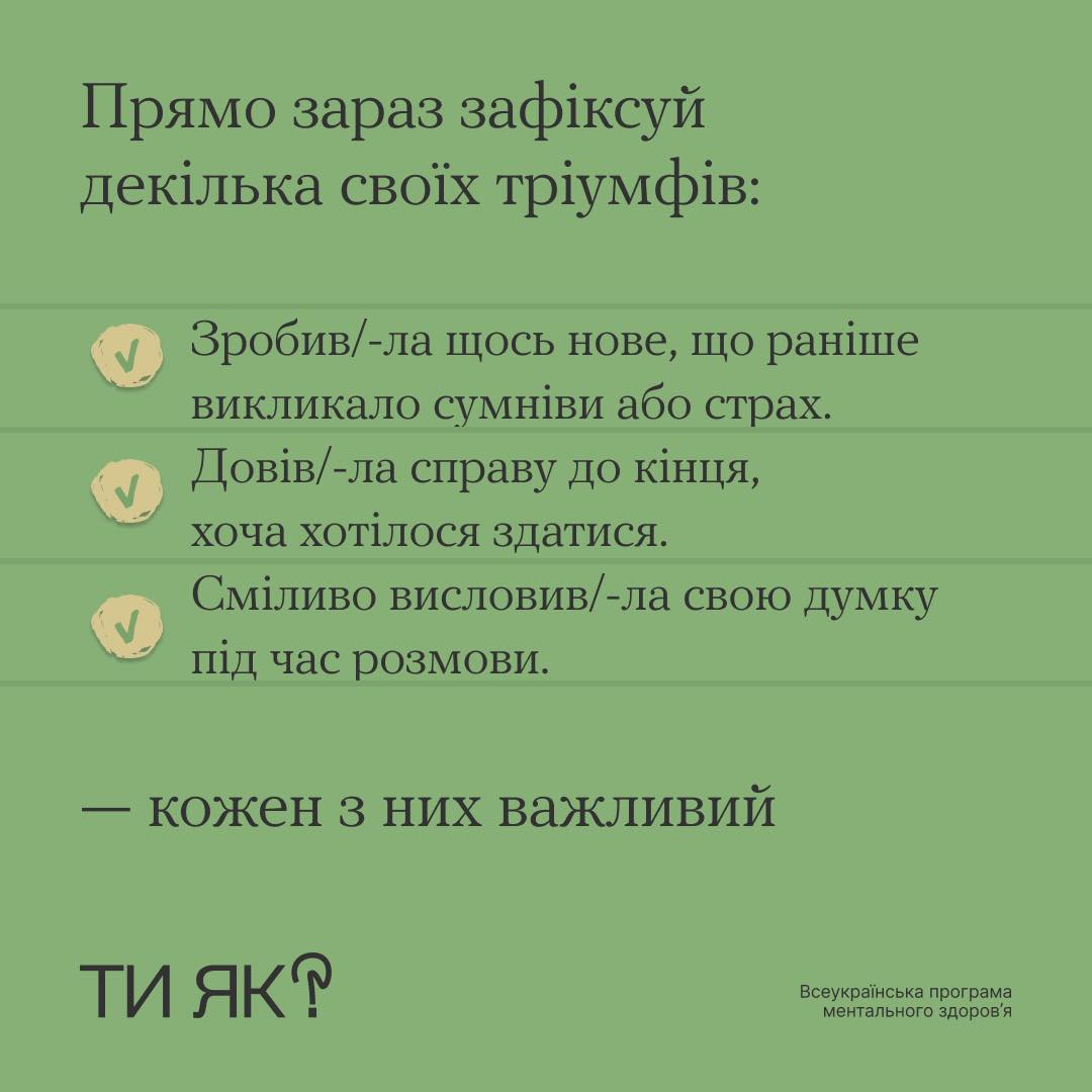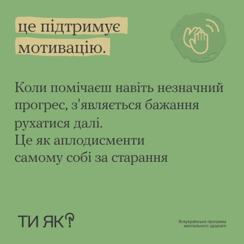 Гортай карусель і дізнайся, чому кожна маленька перемога має значення і як вона допомагає відчути себе радіснішим та впевненішим у щоденному житті.