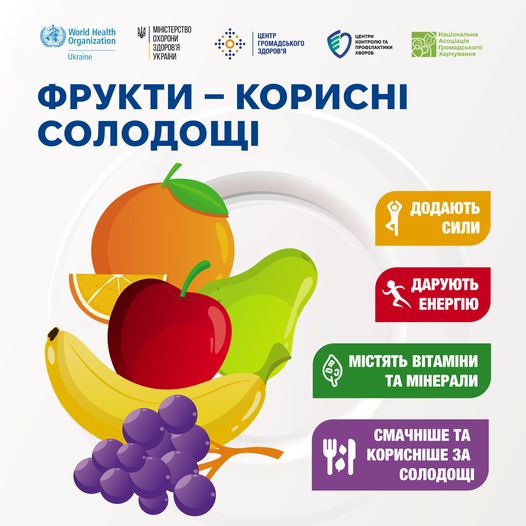 Всесвітня організація охорони здоров’я (ВООЗ) рекомендує споживати щонайменше дві порції фруктів (плюс три порції овочів) на день, щоб забезпечити організм необхідними поживними речовинами.