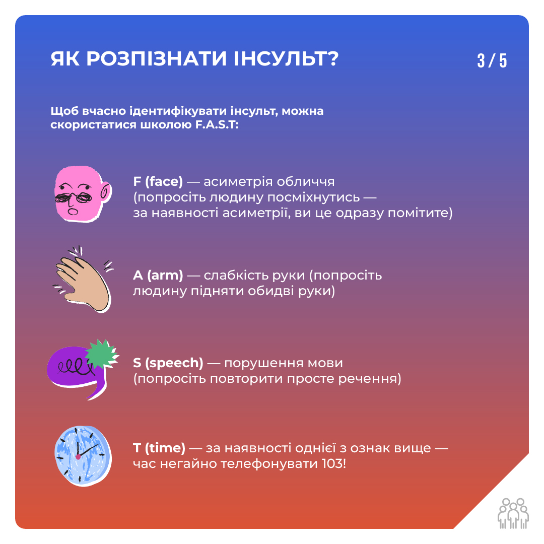 ℹ︎ Детальніше про те, як розпізнати та діяти при інсульті у інфографіці та за посиланням: