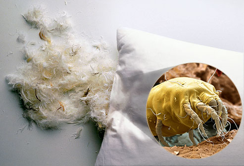 , де людиною створюються для них найкомфортніші умови. Кліщі скупчуються в пилу матраців та пір’ї подушок, можуть бути на м’яких меблях, іграшках, килимах, одязі.