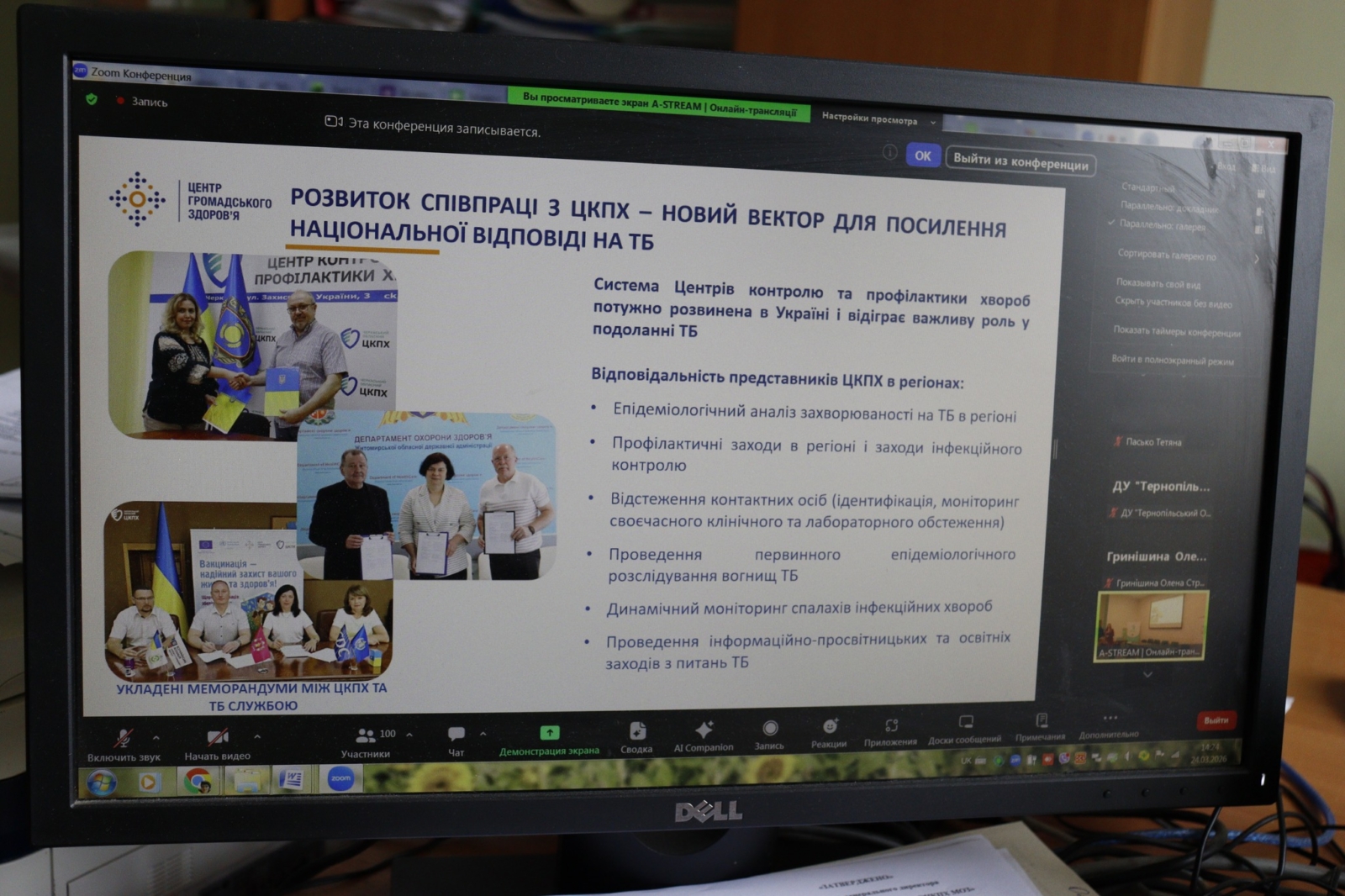 У форматі он-лайн обговорили актуальні виклики, які перешкоджають досягненню глобальної візії подолання ТБ за участю людей, які безпосередньо залучені до заходів з протидії ТБ на своєму місці, пошук можливих шляхів впливу на ситуацію завдяки координації зусиль та зміцнення співпраці фтизіатричної служби, представників ЦКПХ та закладів первинної медичної допомоги.