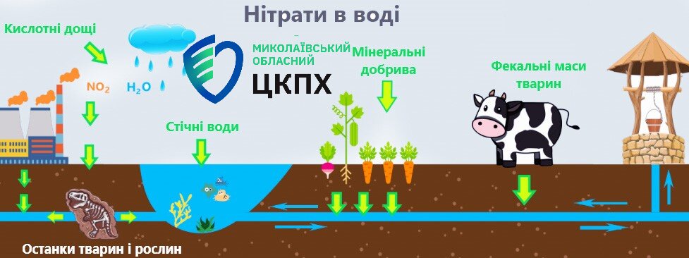 Багато людей думають, що вода зі свердловини або колодязя апріорі чистіше і здоровіше тієї, що тече з крана. Це далеко не так. Фахівці ДУ « Миколаївський ОЦКПХ МОЗ України» відзначають, що при аналізі води на нітрати, досить часто бракують як раз проби води з колодязів і свердловин. Також в зоні ризику і поверхневі джерела (ріки, озера).