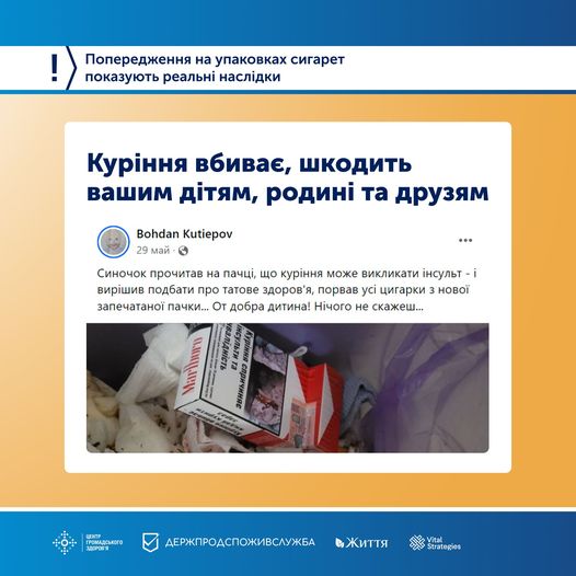 Нещодавно журналіст Богдан Кутєпов поділився історією про те, як медичні попередження впливають на дітей і застерігають їх від куріння. Богданів син «вирішив подбати про татове здоров’я, порвав усі цигарки з нової запечатаної пачки…» — це черговий доказ ефективності нових зображень.