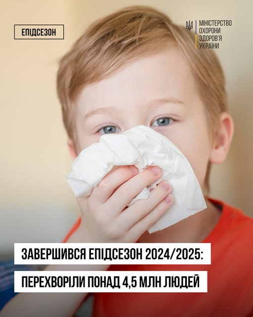 В Україні офіційно завершився епідемічний сезон, який щороку починається восени та закінчується навесні. Під час якого епідсезону прогнозовано зростає кількість випадків гострих респіраторно-вірусних інфекцій (ГРВІ) — застуд, COVID-19 та грипу.