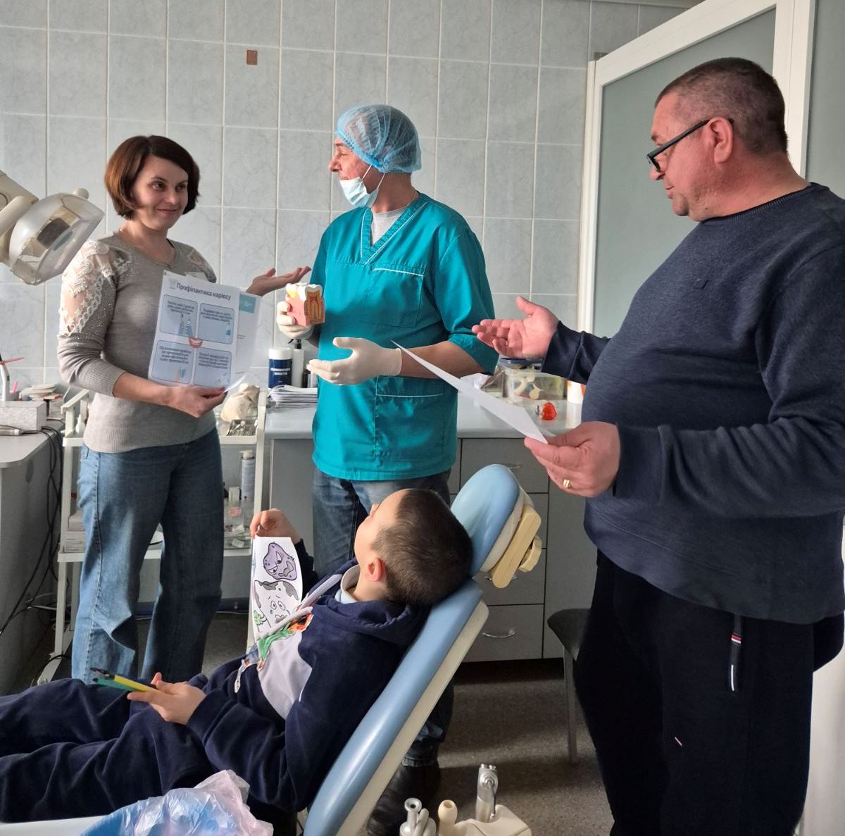 Цього дня тут відбулася особлива зустріч — не просто огляд, а щира розмова про важливе. Стоматолог пояснював батькові та сину, як правильно доглядати за зубами, на що звертати увагу щодня і чому профілактика завжди краща за лікування.
