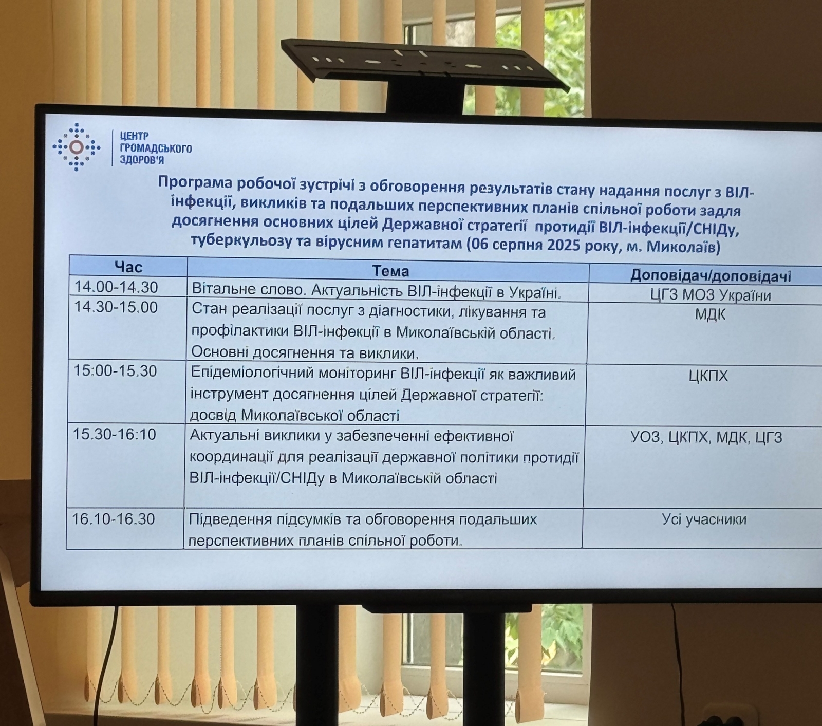 Зустріч завершилася конструктивним обговоренням, під час якого учасники домовилися про подальші кроки з удосконалення системи надання ВІЛ-послуг, зокрема щодо маршрутизації пацієнтів, обміну даними та підвищення доступності профілактичних заходів.