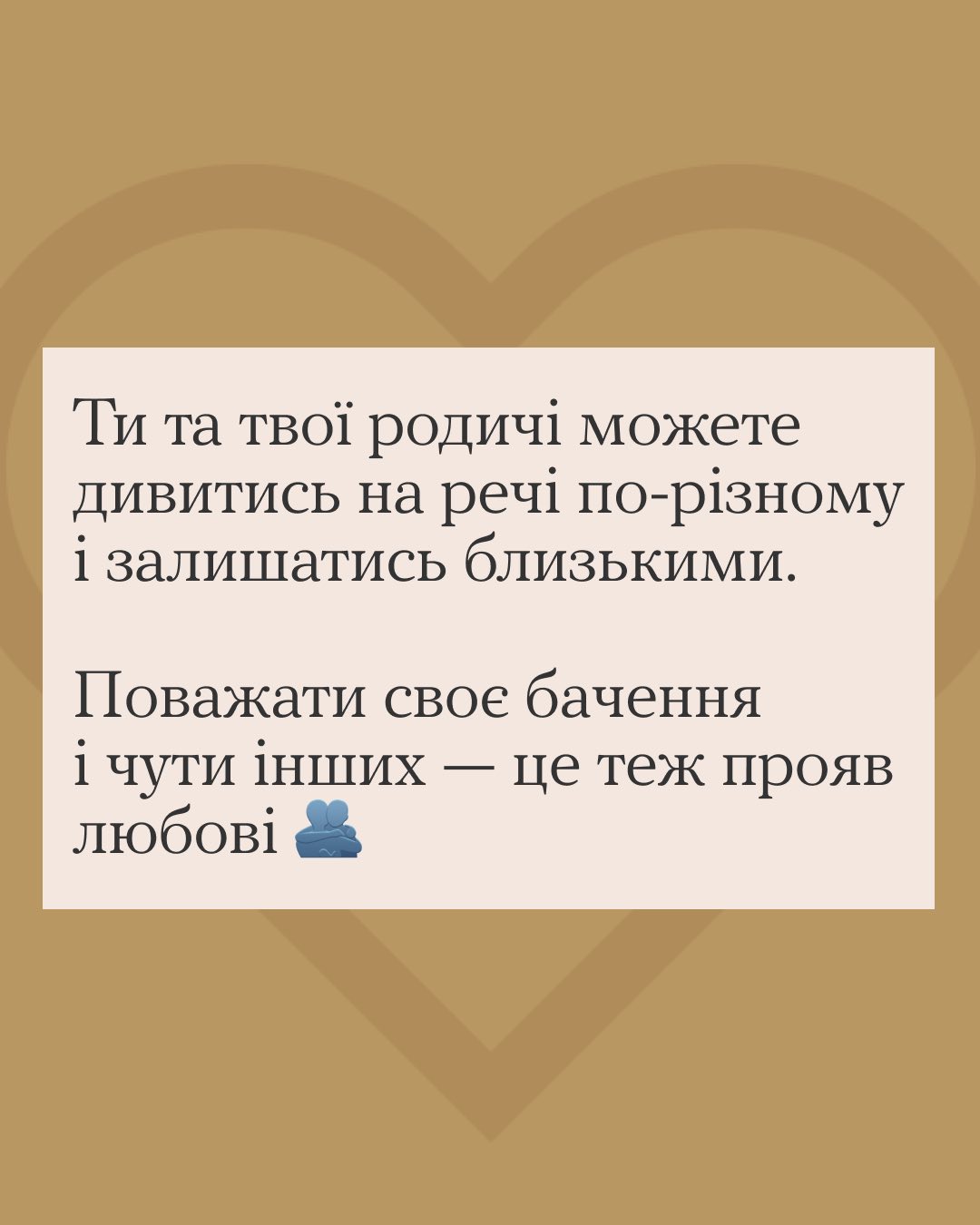 Ця карусель — маленька памʼятка про те, як не втратити себе в складних розмовах і зберегти теплий зв’язок з рідними